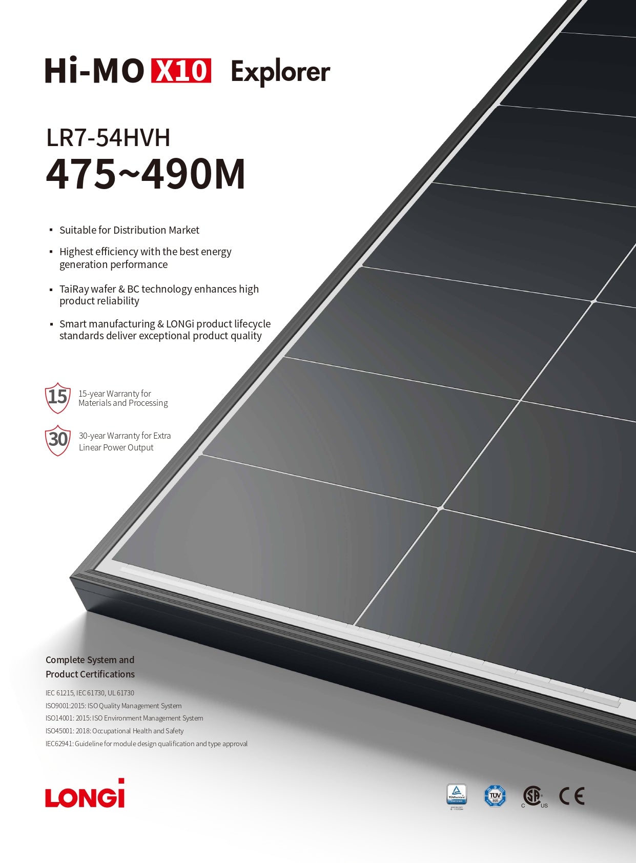 LONGI HI-MO X10 Explorer 475Watt 108 Cell LR7-54HVH-475M Solar Panel